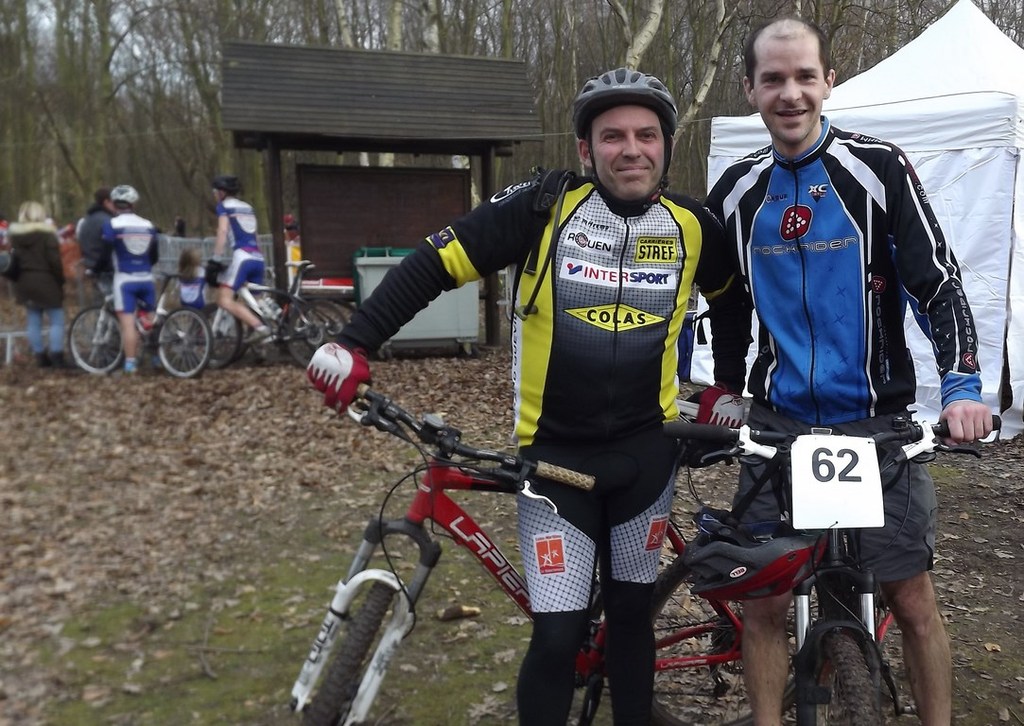Giles et Christophe ont relevés le Défi participer à la course V.T.T organisé par l'E.C.Q au chêne à Leu .. Une première pour eux