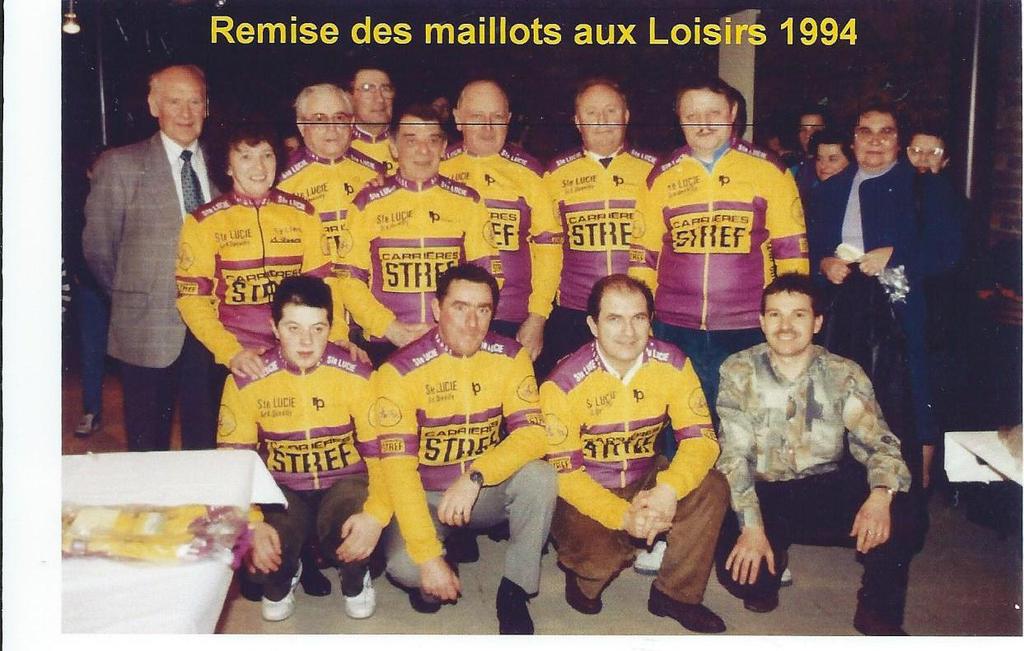 Souvenirs...Souvenir............ "Remise des maillots au premier groupe des loisirs il y a 20 ans. Jean Marie, Pascal, Raymond sont toujours présent(un peu plus âgés)certes en présence de Mr et Mme STREF notre sponsor principal.